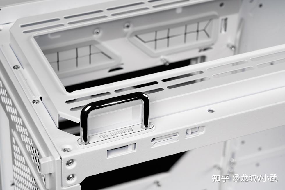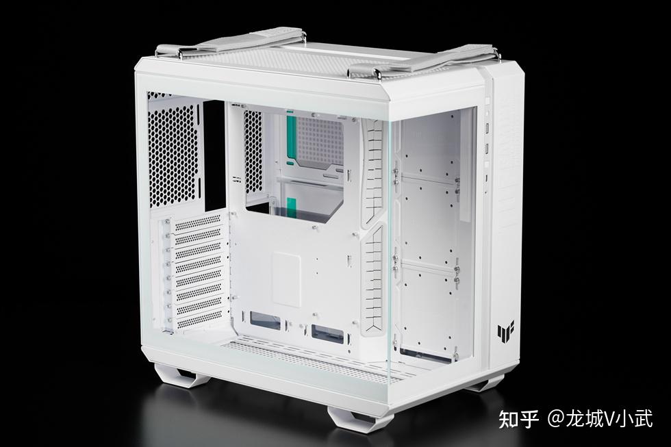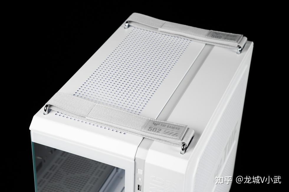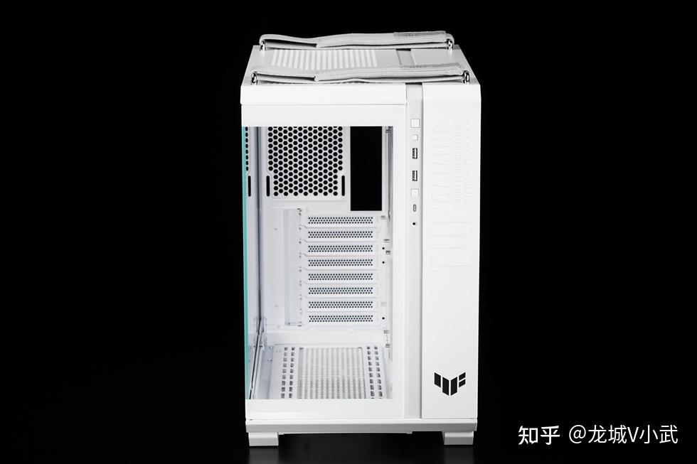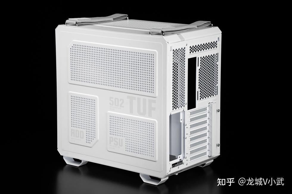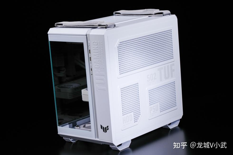 机箱采用TUF游戏GT502无界版,外观与GT502无界版一致。机箱的三维尺寸分别为285 x 450 x 446mm。