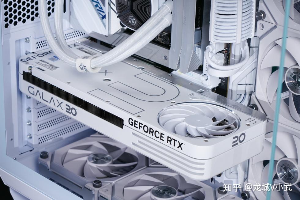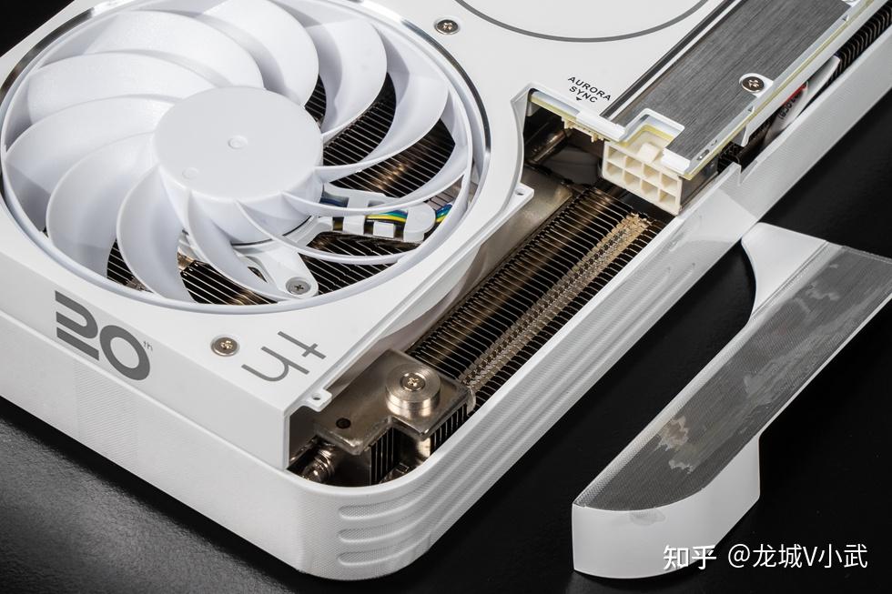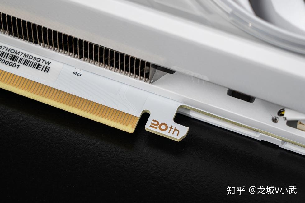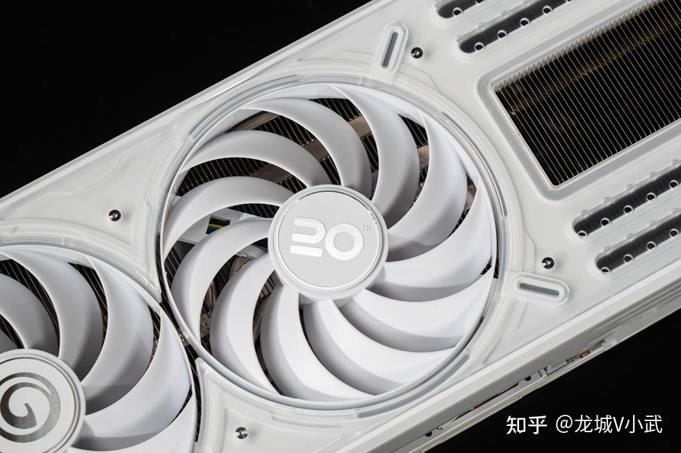 显卡外观采用纯白典雅的设计,配合CNC、喷漆、丝印等工艺,每一处匠心打磨的细节都给人带来精致高贵的既视感。机身上品牌20周年的标志性元素也彰显了它的特殊身份,让玩家在使用过程中更好地感受品牌的历史和荣誉。显卡的三维尺寸为344mm×152.3mm×45mm,显卡的厚度为2个插槽,对大多数情况都非常友好。