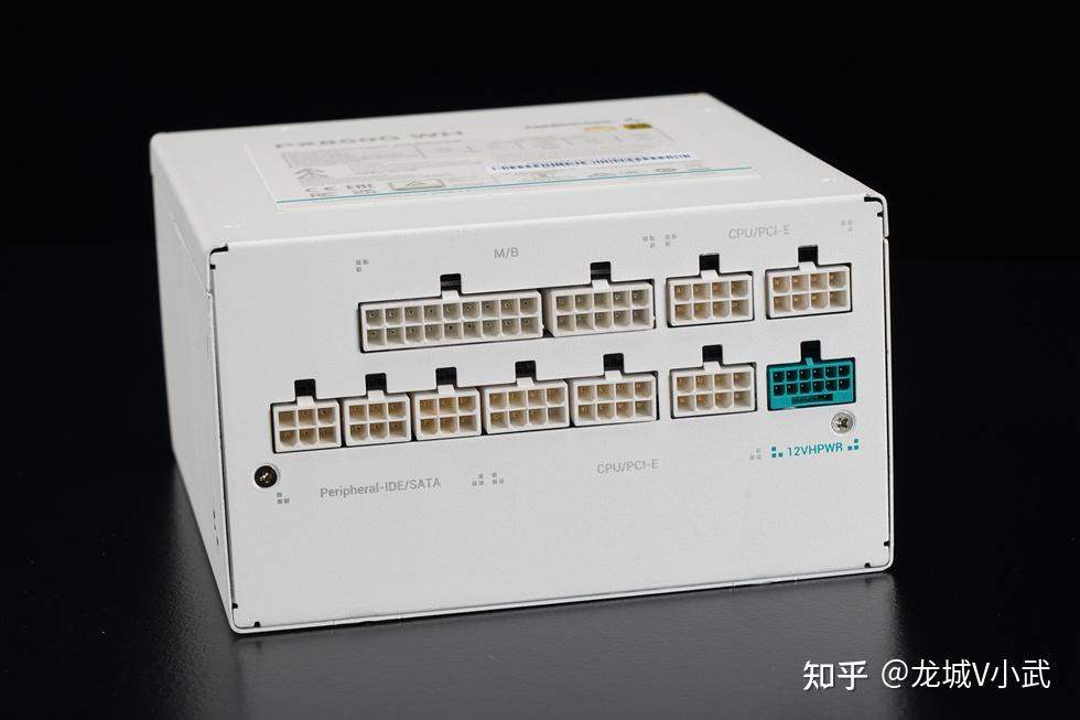 整个模块的电源接口有1组18针+10针接口(对应主板上的24针接口)、5组8针接口(对应主板上的CPU供电接口和PCI-E显卡供电接口)和3组6针接口(对应其他设备上的SATA供电接口和大D4供电接口)。1个12+4pin原生12VHPWR有线接口,可用于扩展600W功率12VHPWR电源接口。