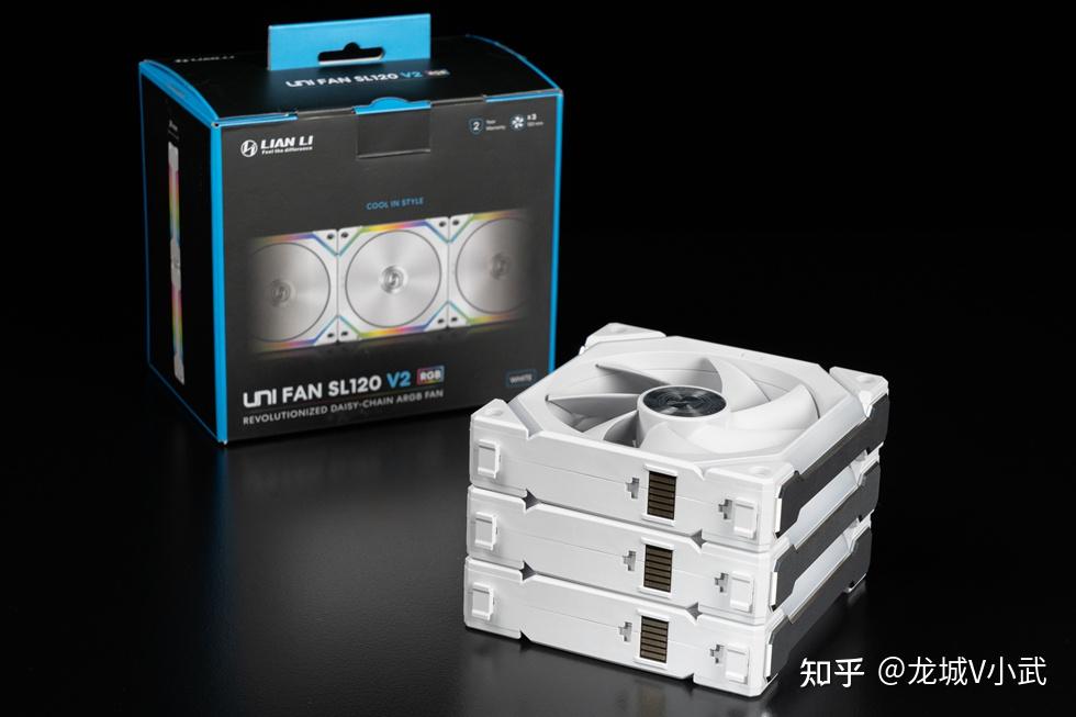 冷却风扇使用李连积木式风扇的SL120 V2版本。作为第一代的升级版,V2版优化了拼接技术,光效也得到了加强。风扇的厚度为28毫米,使冷却效果更好。